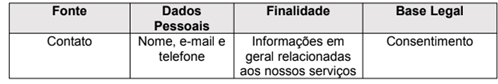 TERMO DE CONSENTIMENTO: documento que coleta manifestação favorável ao tratamento dos dados pessoais para finalidades determinadas.